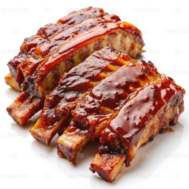 Ближайшее изображение глазированных запасных ребер на белом фоне