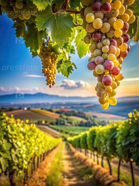 Солнечные виноградные лозы в летней долине