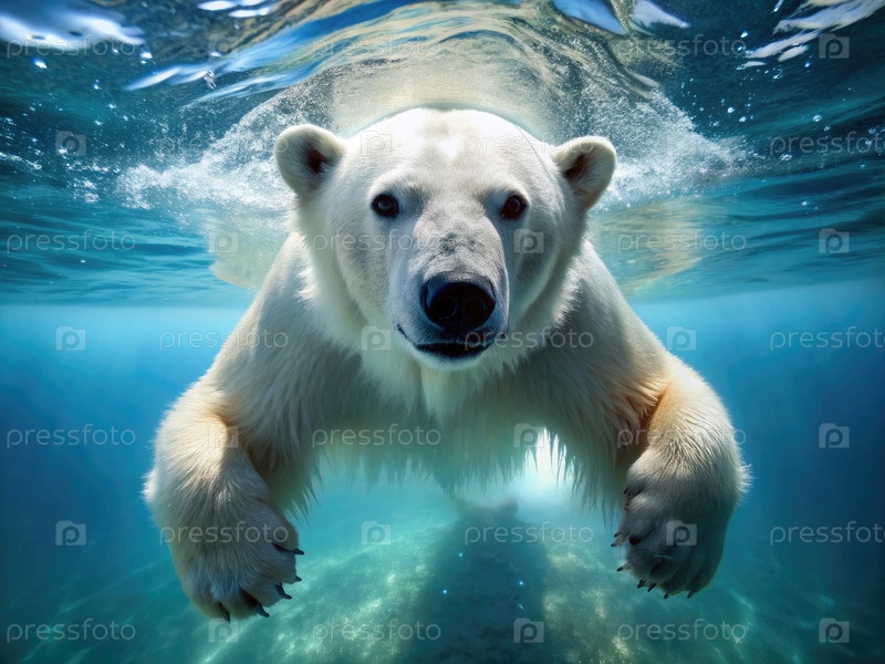Белый медведь плавает под водой в арктических водах. генеративный ИИ