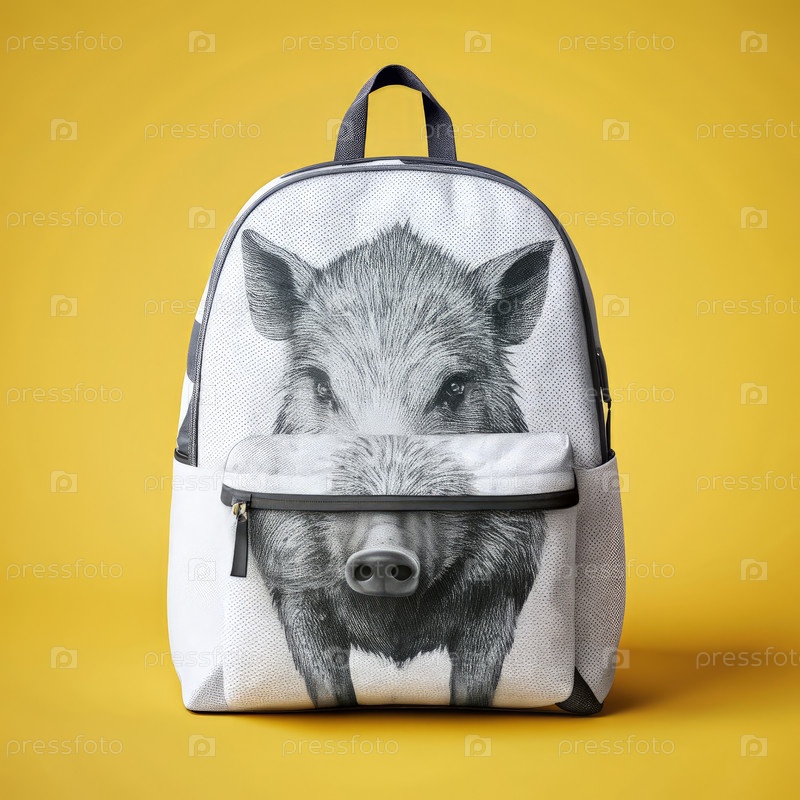 Мокет рюкзака черно-белого дикого кабана на желтом фоне