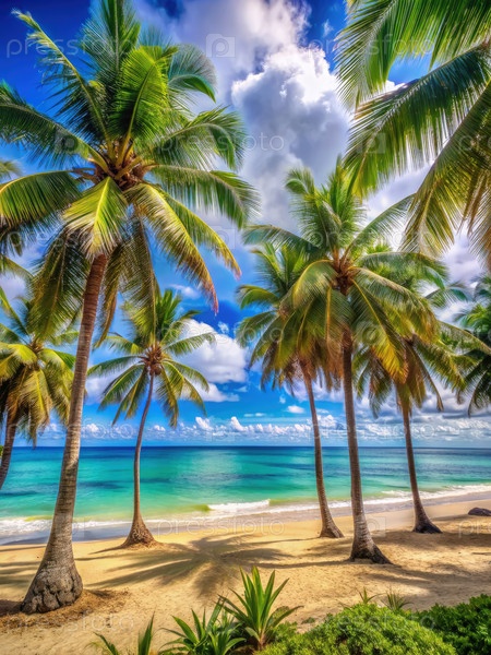 Роскошные пальмовые деревья составляют основу тропической пляжной сцены