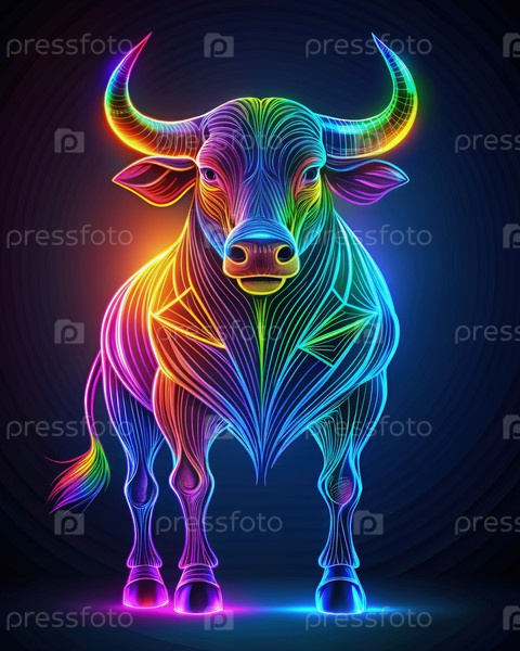 Неонная иллюстрация радужной быки. генеративный ИИ