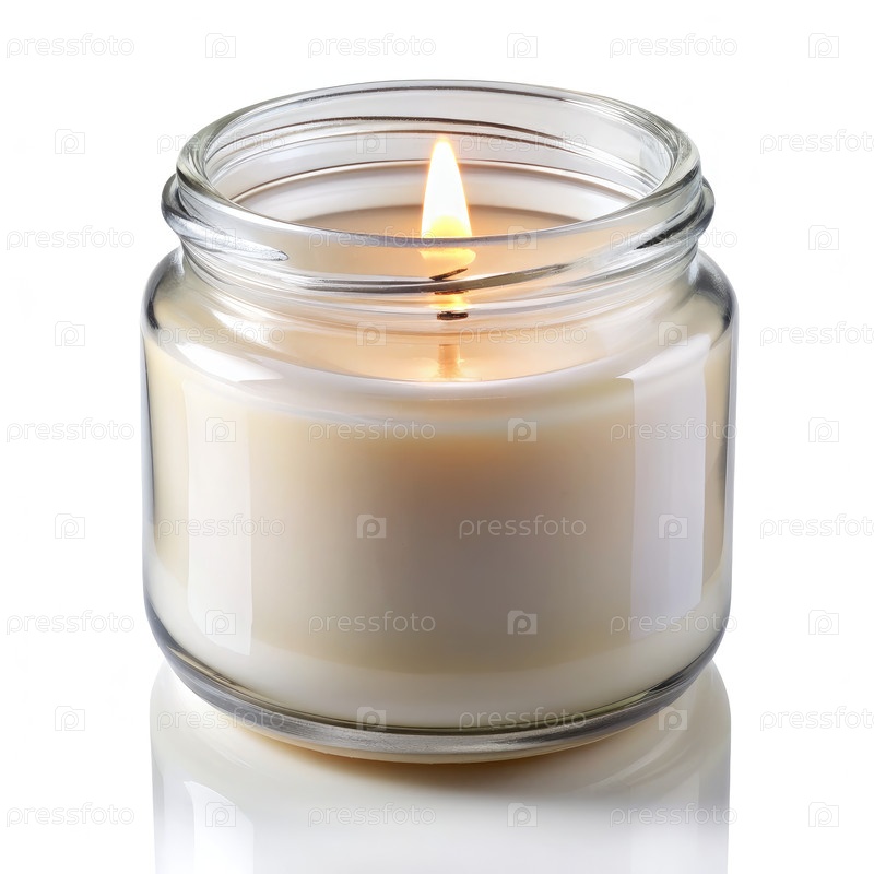 Небольшая стеклянная банка с зажженной свечой внутри. генеративный AI