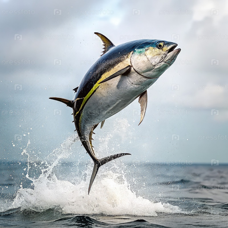 Мощный тунец прыгает из океанических вод