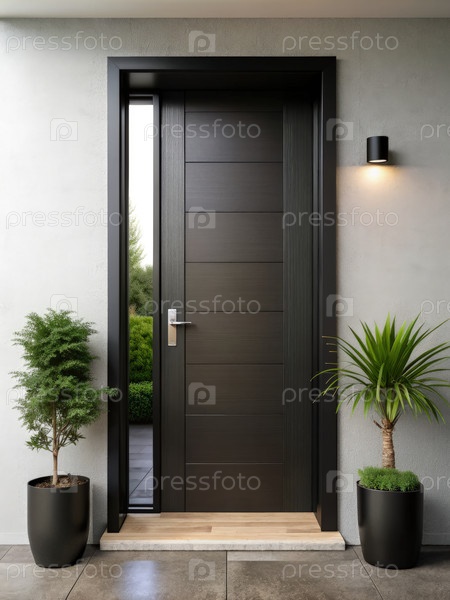 Черная дверь с растениями и светильниками. генеративный современный ИИ