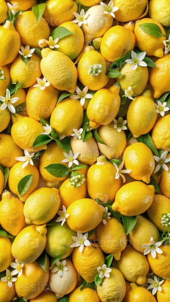 Закрытие спелых лимонов и цветов. генеративный ИИ