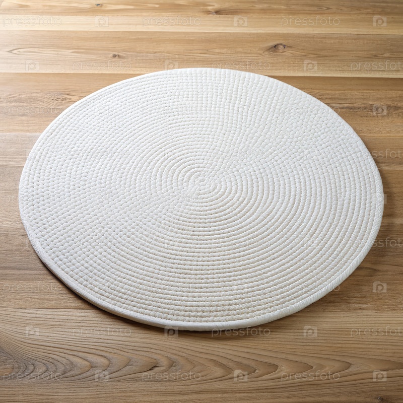 Белый плетеный круглый плацемат на деревянном полу