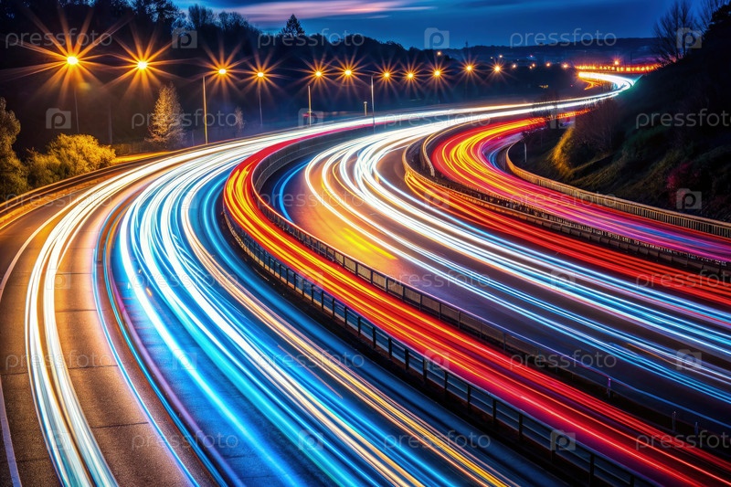 Поток огней на городском шоссе ночью. генеративный поток ИИ