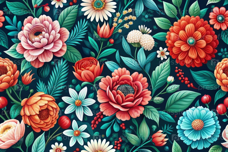 Бесшовная цветовая иллюстрация с подробными цветковыми узорами