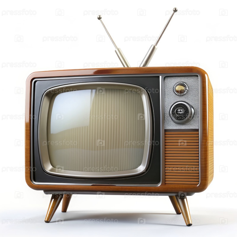 Винтажный телевизионный набор с антеннами на белом фоне