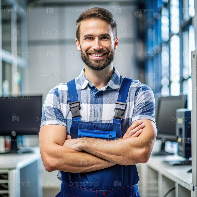 Улыбающийся администратор сервиса в промышленной среде. генеративный ИИ