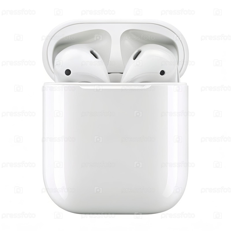 Белые беспроводные наушники в корпусе для зарядки. генеративный ИИ