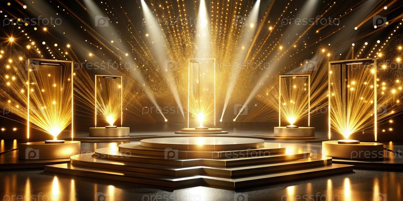 Сцена освещается лампами золотого света. генеративный ИИ