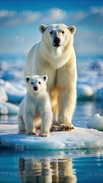 Белый медведь и его детеныш на айсберге