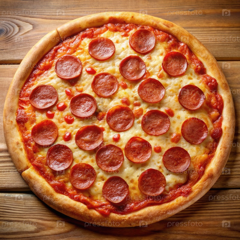 Вкусная пицца с пеперони на деревянном столе