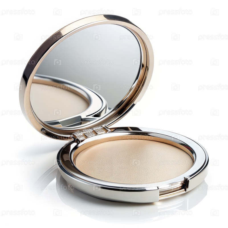 Круглое порошковое компактное открытое зеркало с серебряной оболочкой. генеративный AI