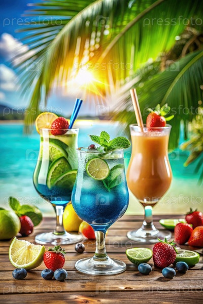 Освежающие летние коктейли с фруктами на пляже