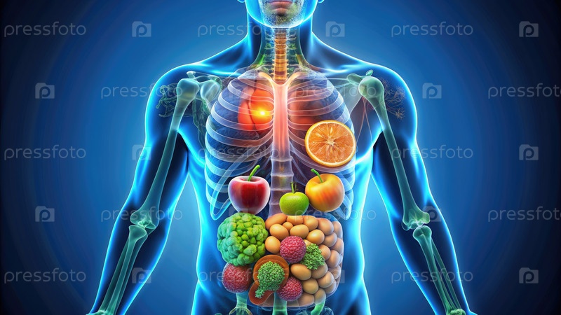 Цифровая иллюстрация мужской фигуры, представляющей метаболизм водорастворимых витаминов