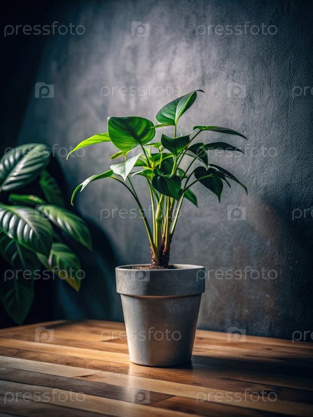 Горшечное растение в темной комнате