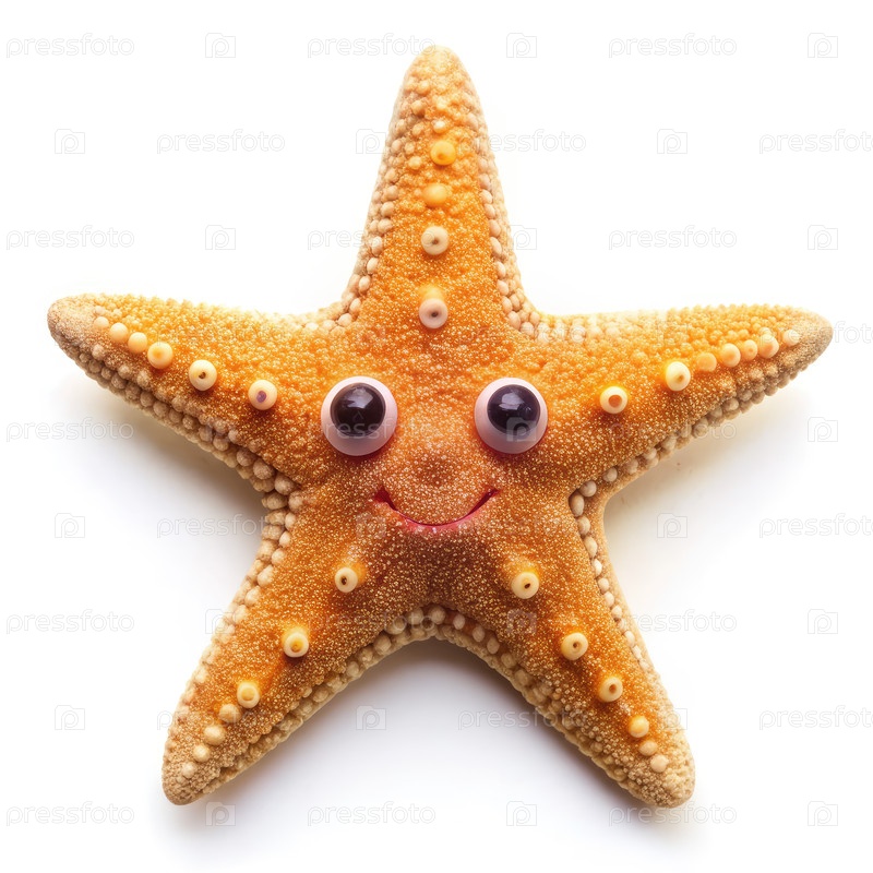 Улыбающаяся морская звезда с гуглиными глазами на белом фоне