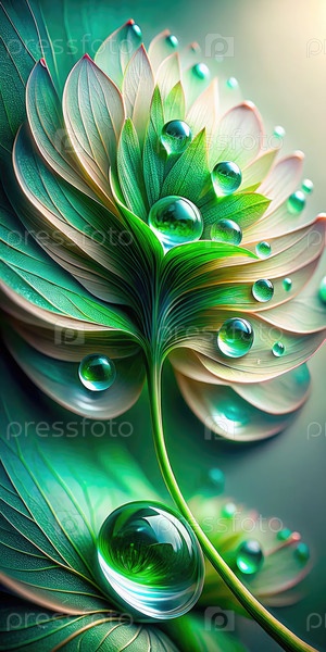 Зеленый цветок с капельками воды вблизи. генеративный ИИ