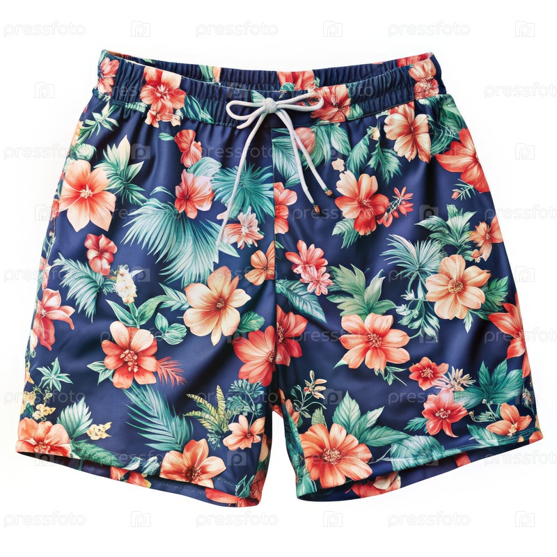 Голубые купальные шорты с цветочным узором. генеративный ИИ