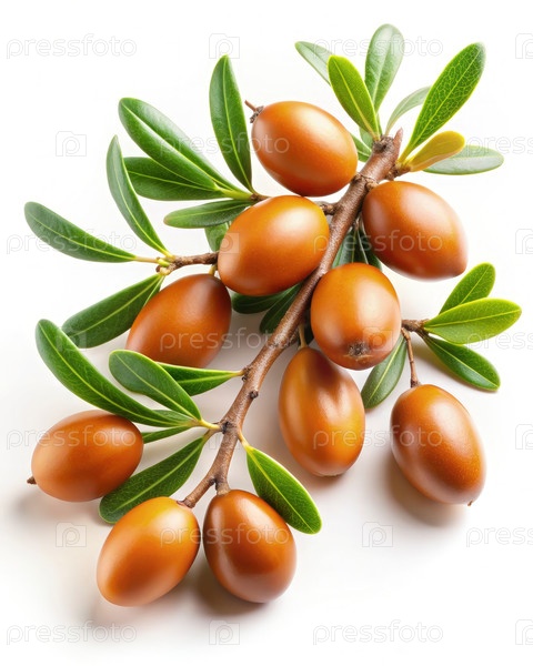 Ветка арганского дерева со зрелыми плодами, изолированная на белом фоне