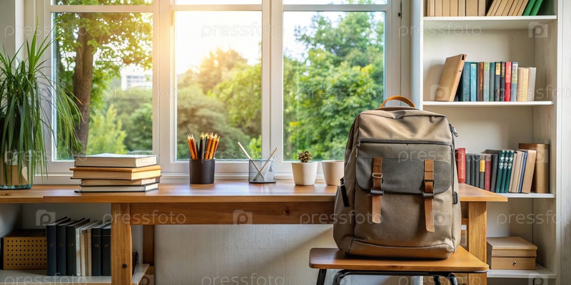 Рюкзак на столе перед окном