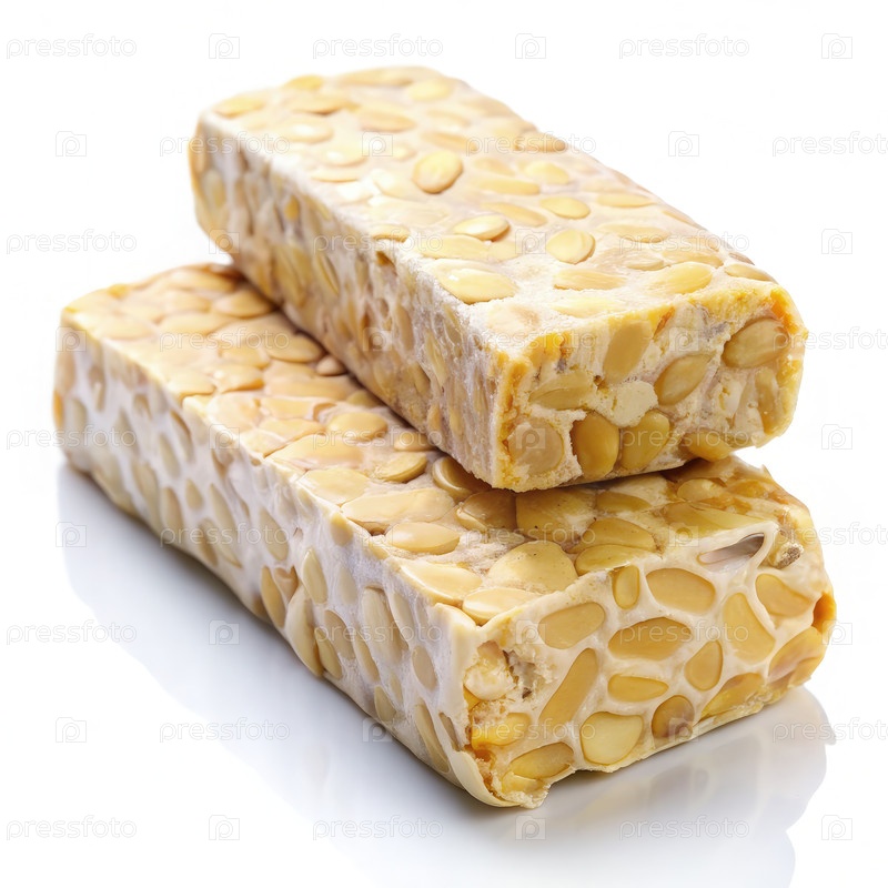 Два куска индонезийского темпе на белом фоне
