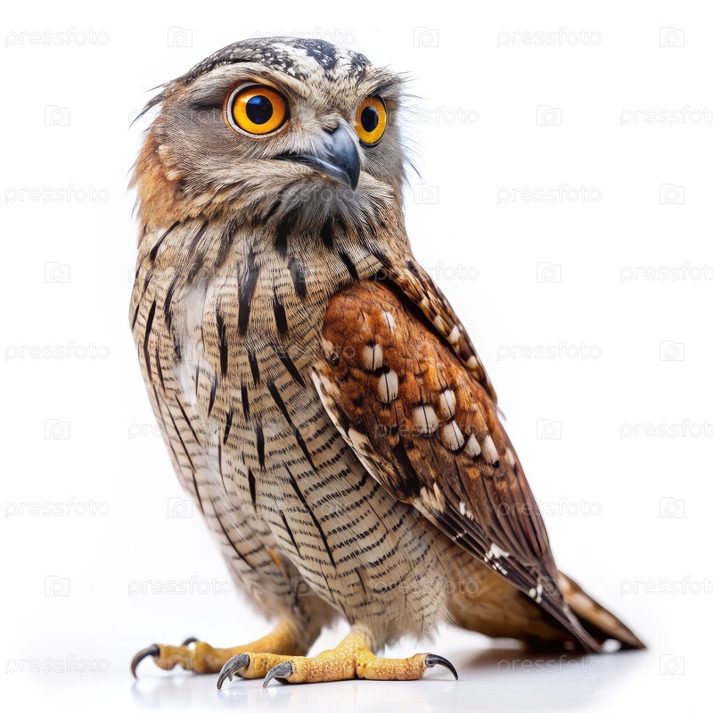 Близкий портрет птицы-потоу на белом фоне