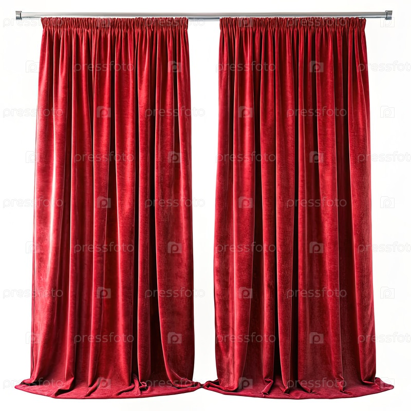 Красный бархатные шторы, висящие на палочке. генеративная ИИ