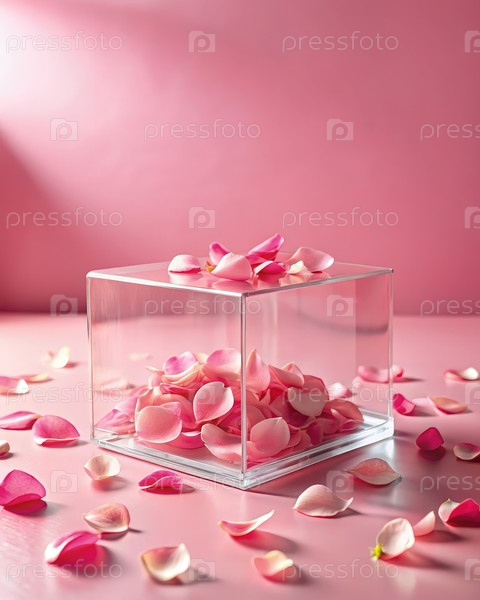 Акриловый кубический дисплей с розовыми лепестками на розовом фоне