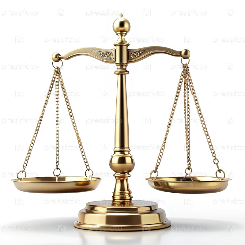 Золотые весы справедливости на белом фоне