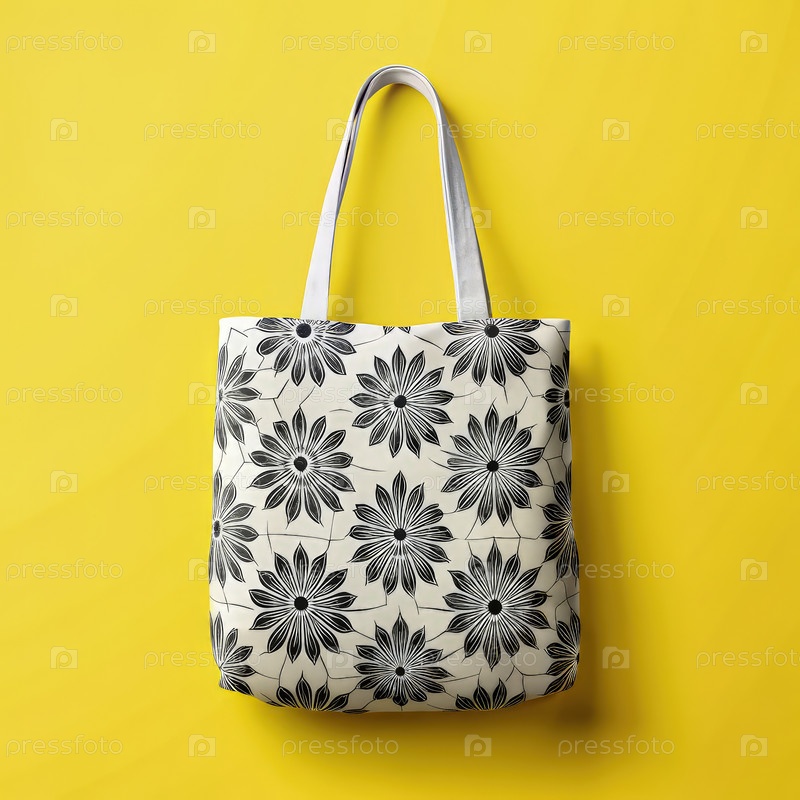 Моку белого холста с черно-белым цветочным узором на желтом фоне