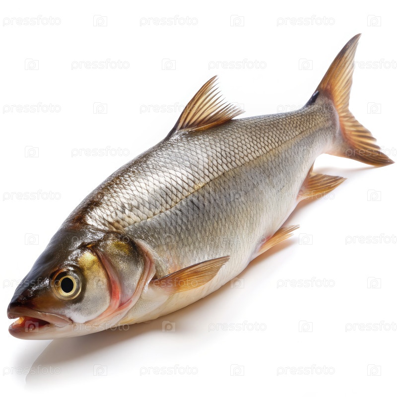 Свежая рыба серебряный карп на белом фоне. генеративная ИИ