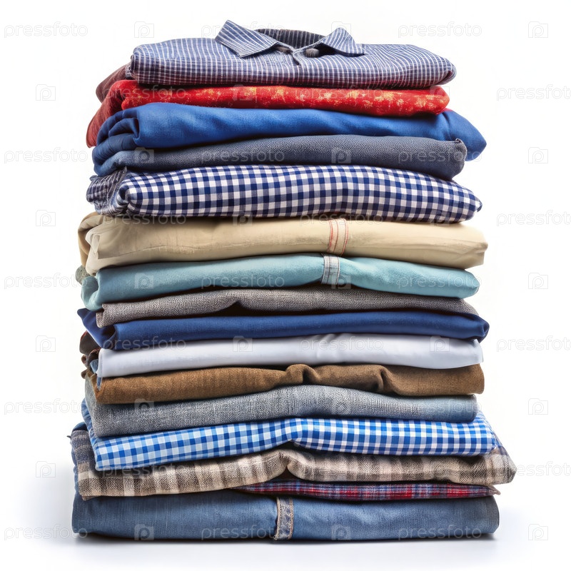 Ухоженная куча складной одежды на белом фоне
