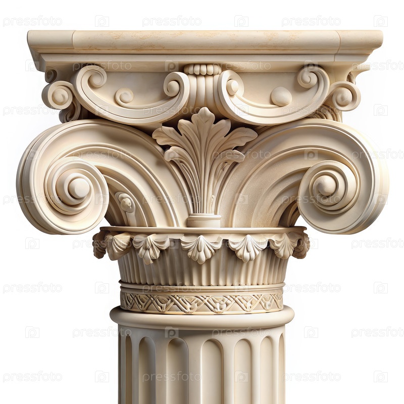 Подробный Close-Up кремового цвета колонки капитала
