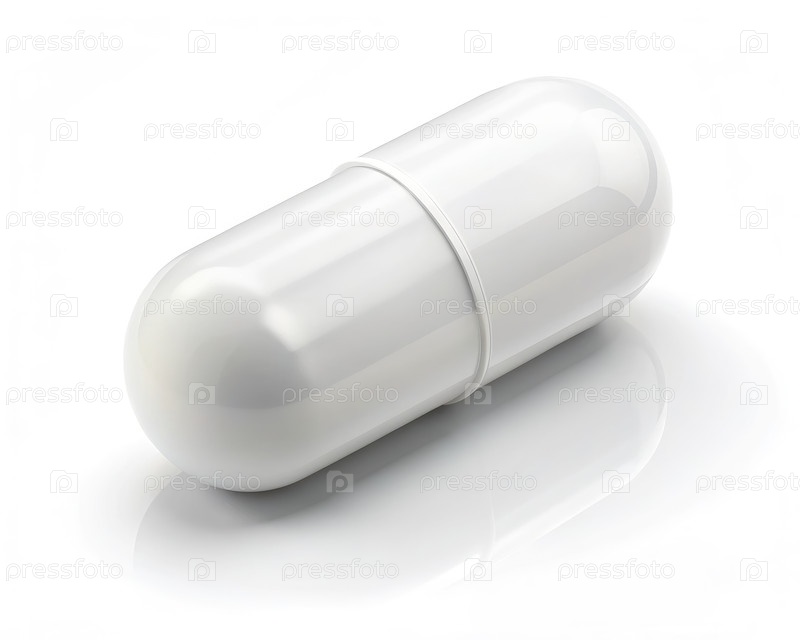 Одинокая белая капсула, лежащая на чистой белой поверхности. генеративный ИИ