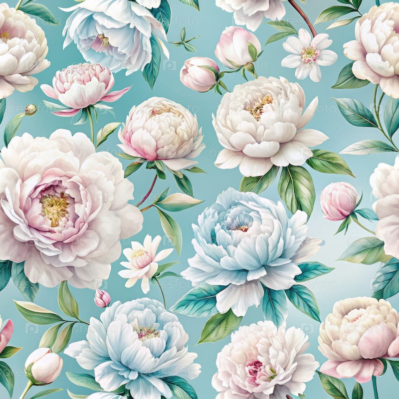 Фон с белыми и розовыми цветами. генеративный искусственный интеллект синий
