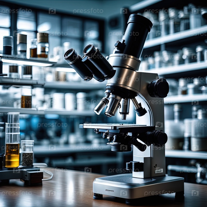 Серебряный микроскоп в лабораторных условиях. генеративная ИИ A