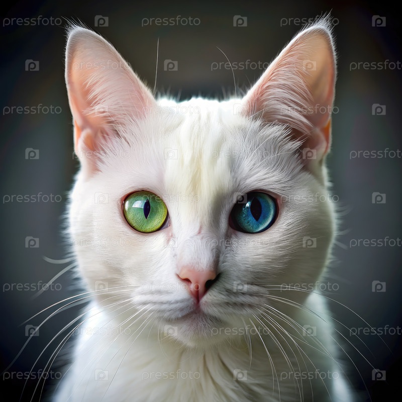 Близкий портрет белой кошки с гетерохромией