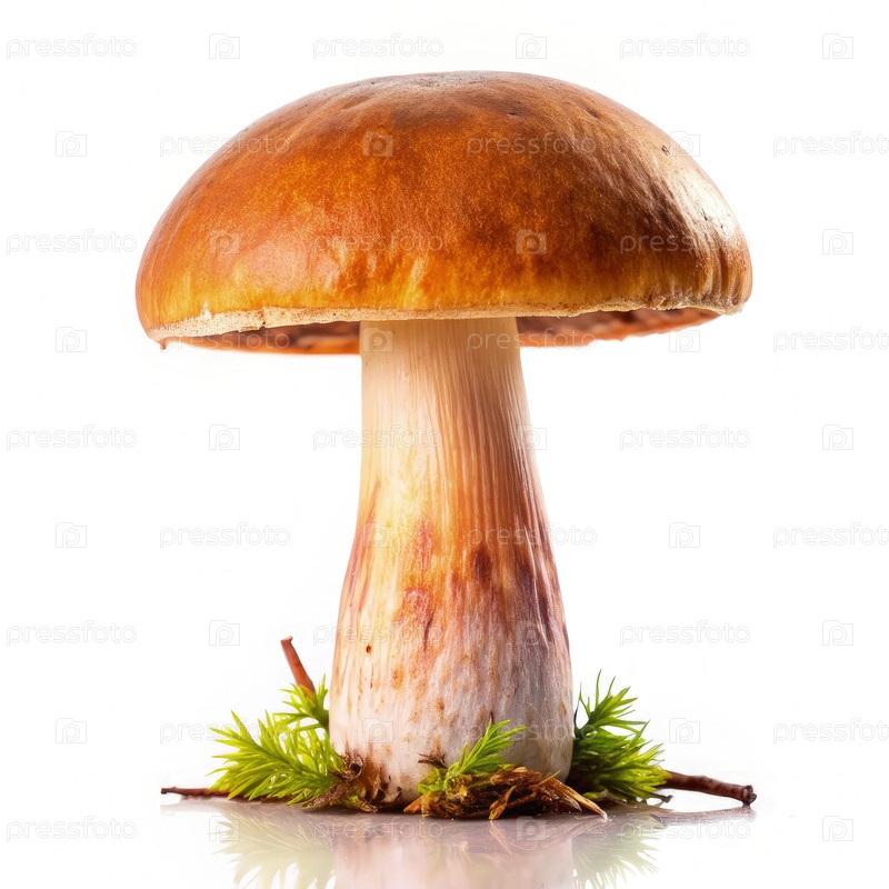 Single Brown Cap Boletus Mushroom Isolated on White Background. генерирующий единственный АИ