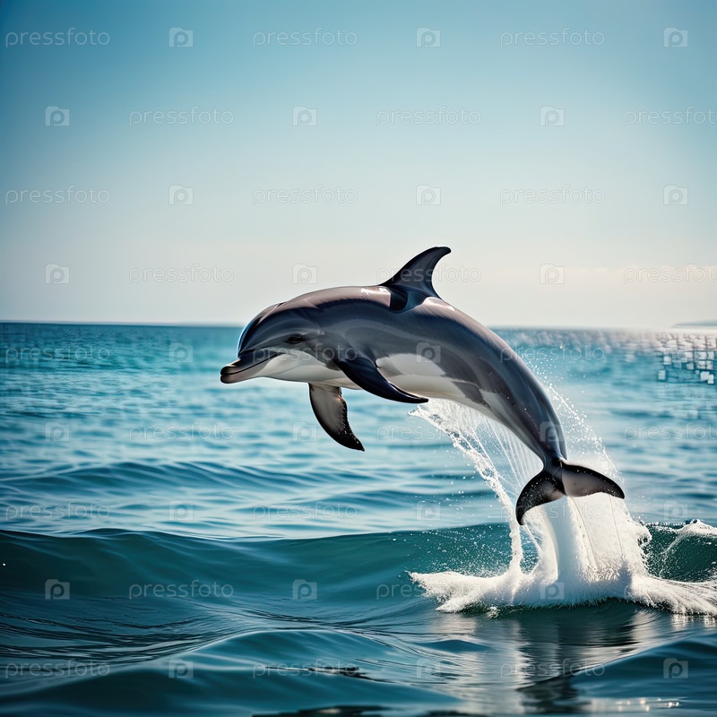 Одинокий дельфин прыгает высоко над океанскими волнами в солнечный день