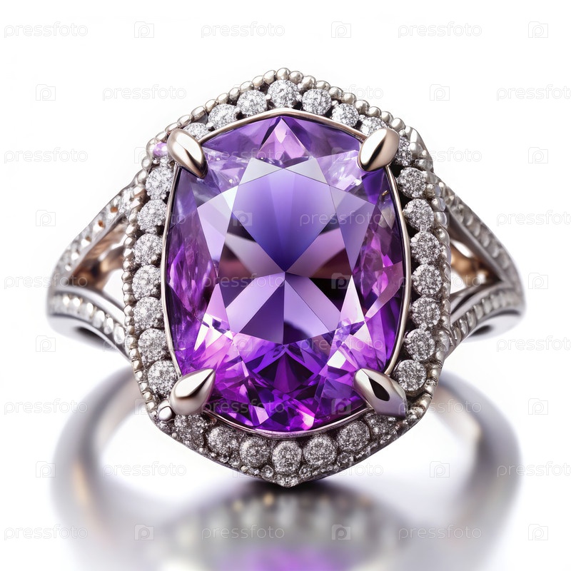 Большое фиолетовое аметистовое кольцо из драгоценного камня с установкой алмазного гало. генеративный AI