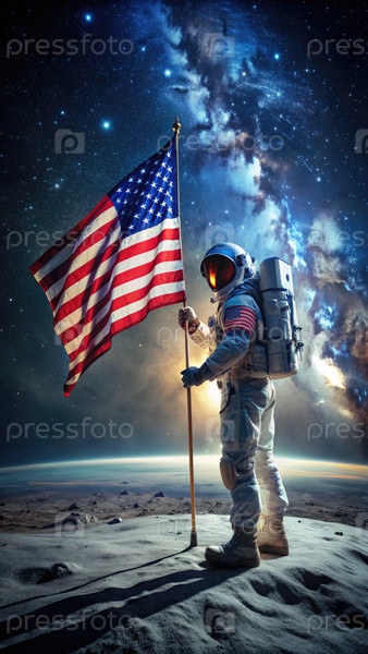 Астронавт посадил американский флаг на лунной поверхности во время миссии "Четвертое июля"