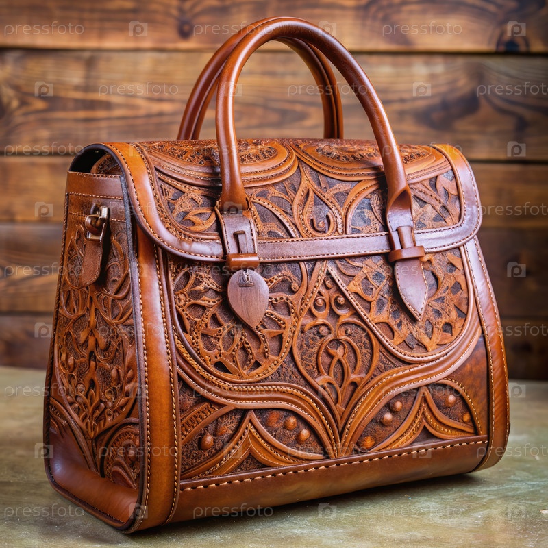 Твердая арабская кожаная сумочка с цветочными резьбами