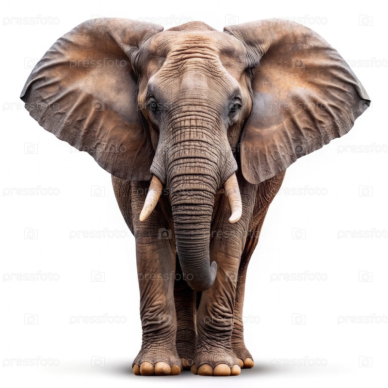 Африканский слон, стоящий в переднем поле зрения с большими ушами и кистями
