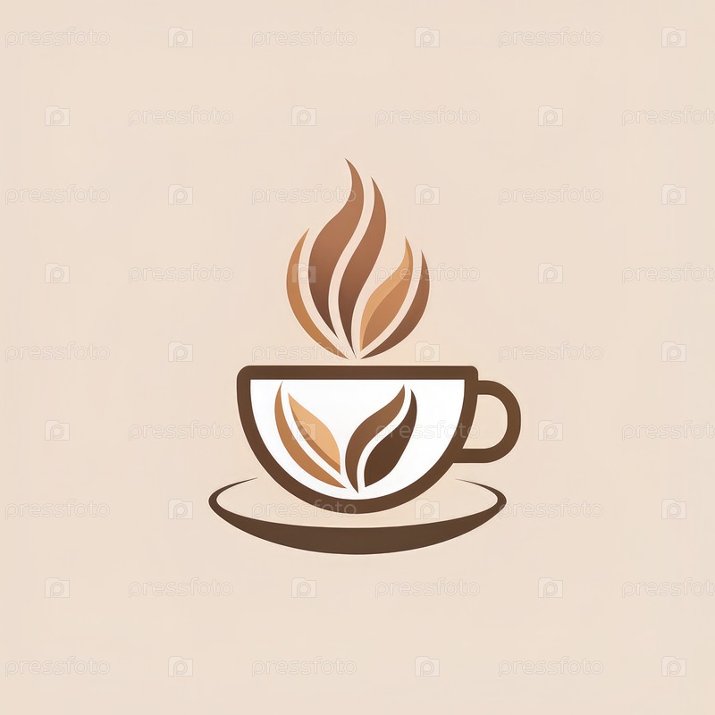 Логотип Brown Coffee Cup с паром и листьями. генеративный простой ИИ