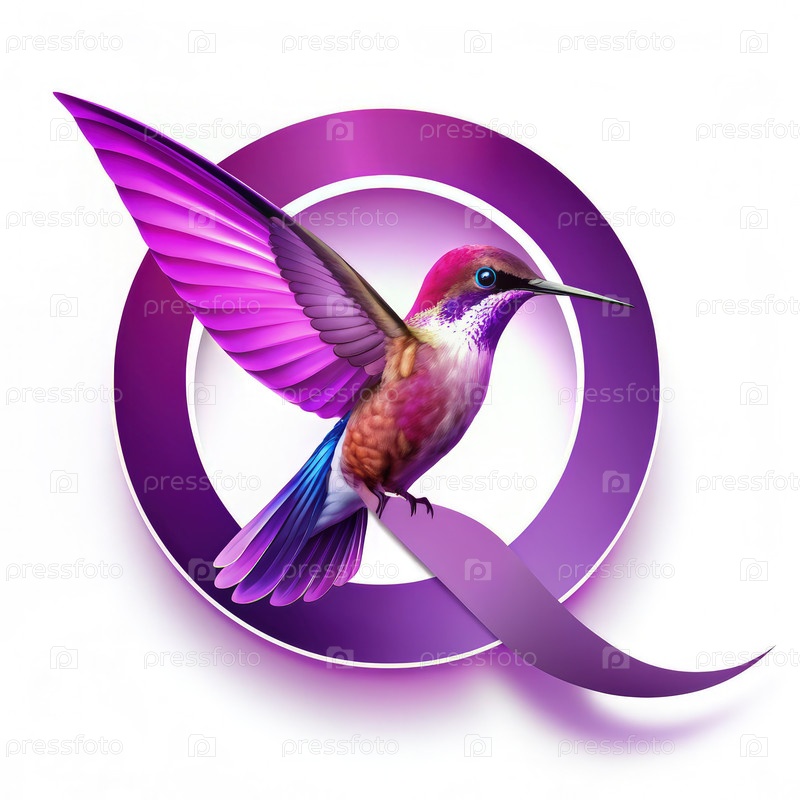 Колибри, летящий через фиолетовый круг