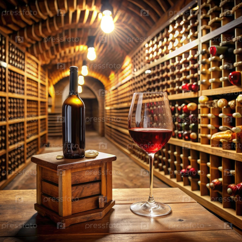 Виноградник с бутылкой и стеклом, готовый к дегустации